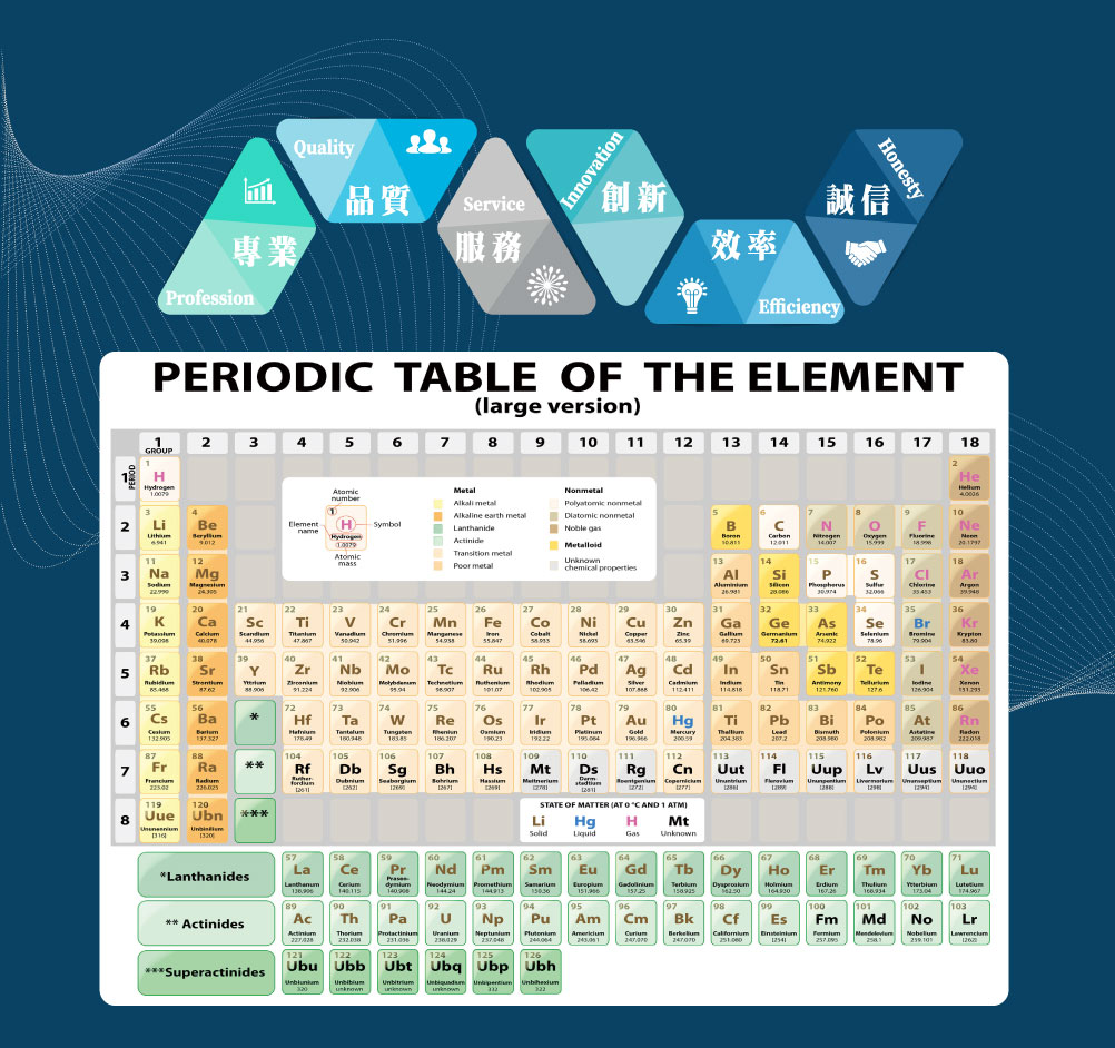 所需之金屬原物料、耗材及成品等相關產品,主要範圍涵蓋: